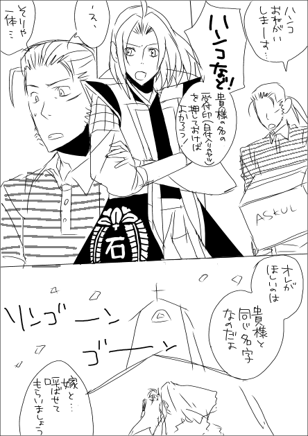 というわけで石田家嫡男を颯爽と捏造していました。髪の毛は、剃髪なんだろなあと思いつつ、でも供養のために伸ばし続けてたらそれはそれでアリじゃないかいということでこうなりました。